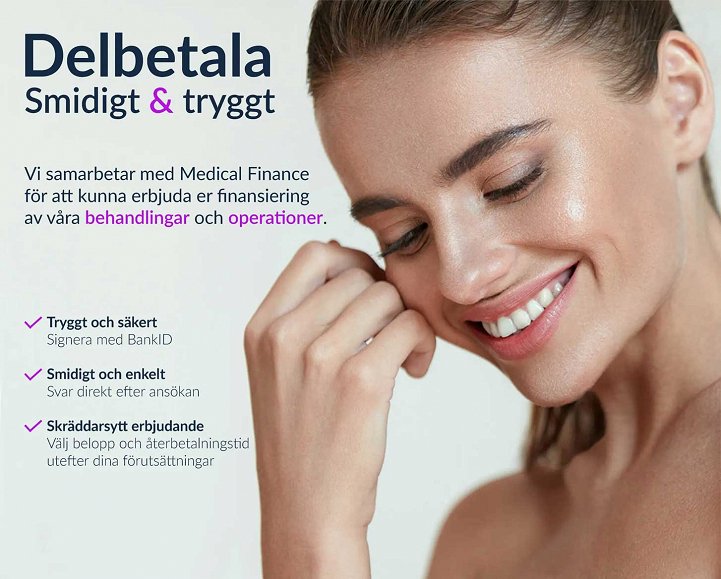För dig som behöver delbetalning samarbetar vi med Medical Finance, som specialiserar sig på vårdfinansiering. De erbjuder en säker och enkel lösning med fördelaktiga lånevillkor anpassade efter dina behov. Du kan enkelt ansöka och läsa mer om deras erbjudanden direkt på deras hemsida, vilket ger dig full transparens och trygghet i finansieringsprocessen.